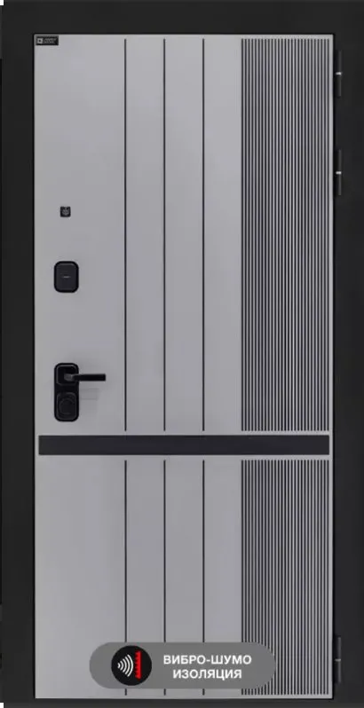 Покраска металла: Муар черный Фрезерованная МДФ панель 10 мм, цвет "Velutto Grigio" с патиной и вставкой из металла в цвет наличника (заподлицо)
